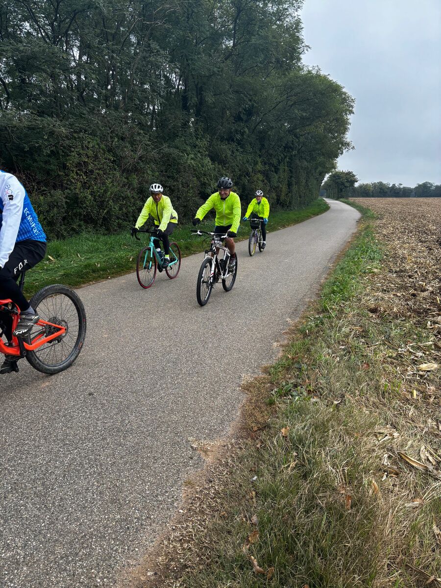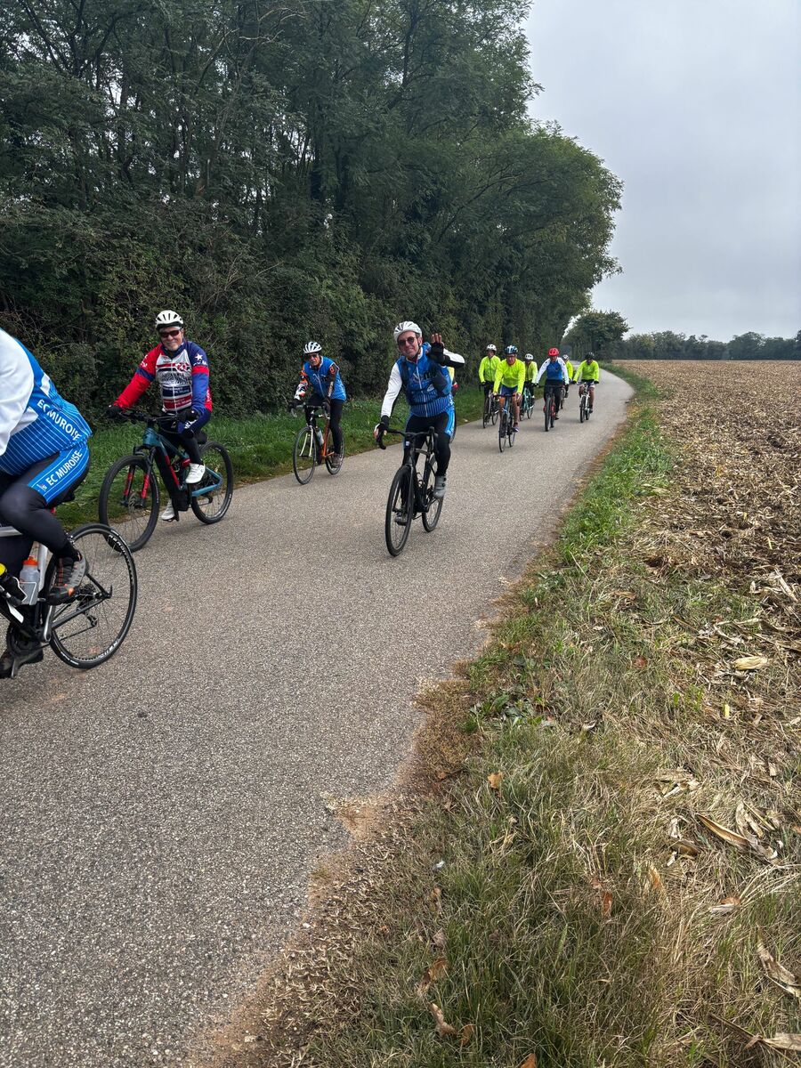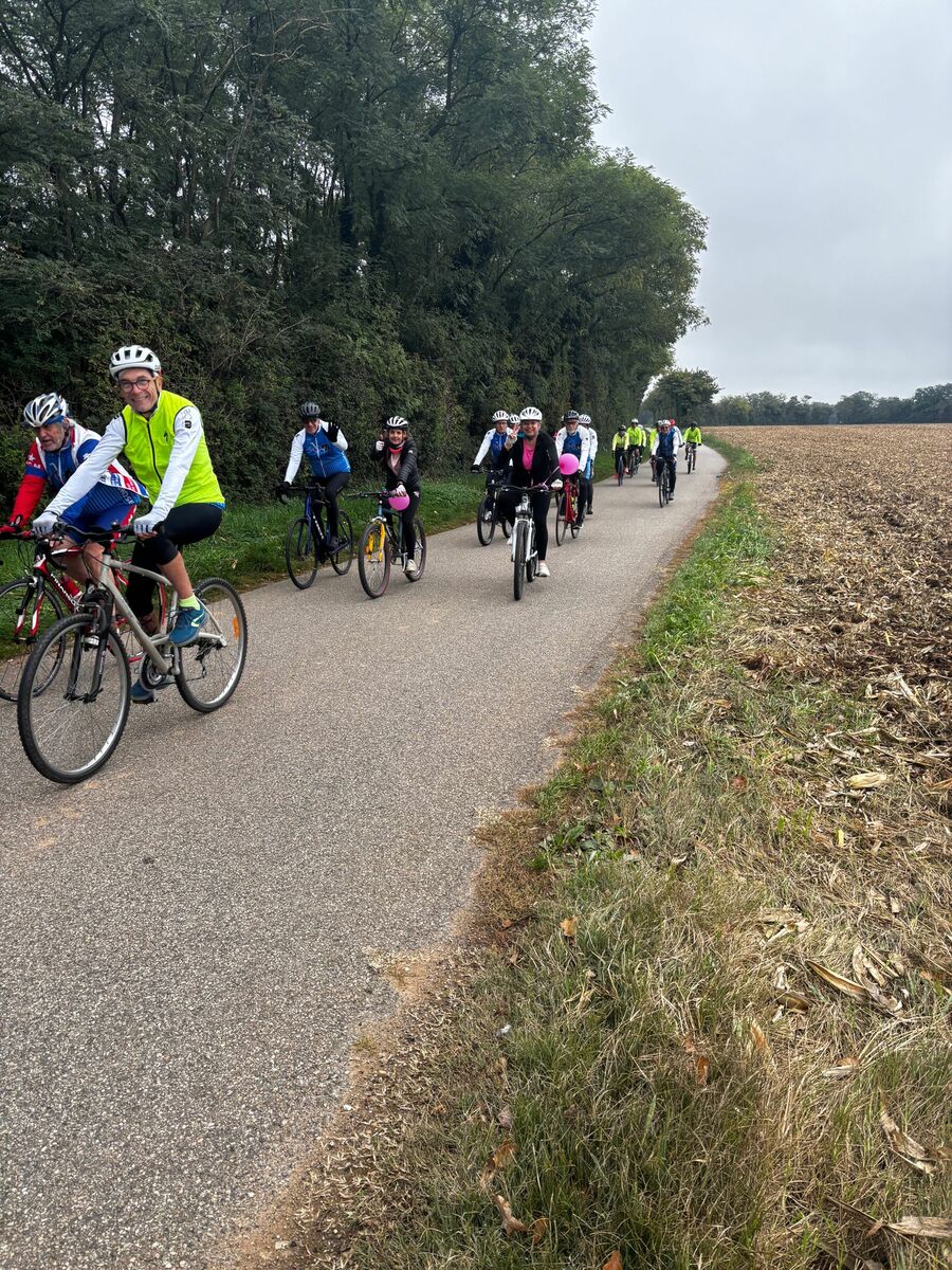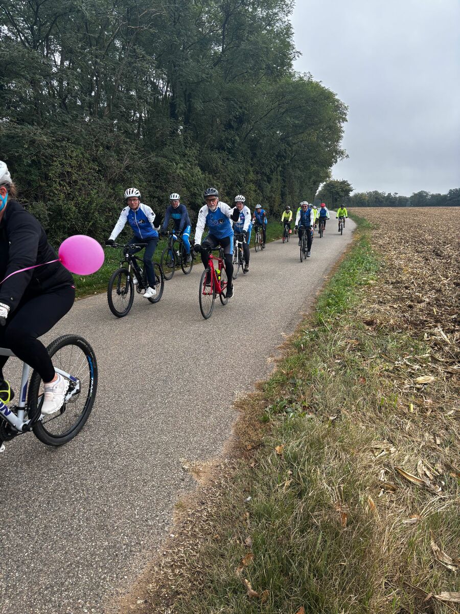 Un nombre important de licenciés de l'ECM a participé à la journée Octobre ROSE organisée par la mairie de Saint Bonnet de Mure, pour une sortie vélo accompagné de quelques cyclos