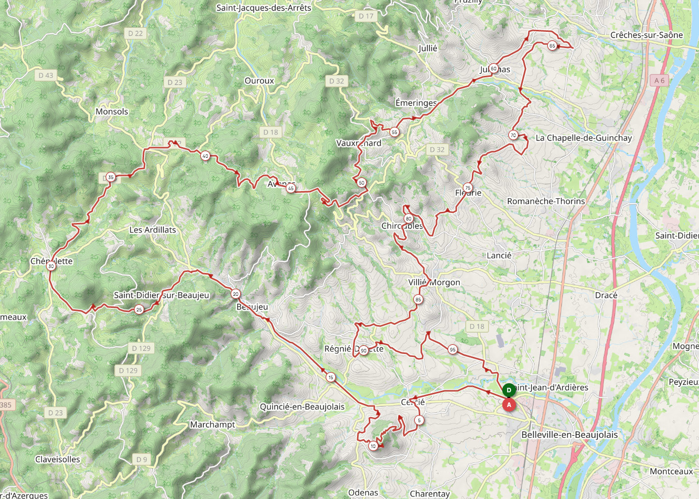 Pour changer de nos sorties Muroises, notre gentil organisateur d’événements nous a emmenés dans le beaujolais, une petite sortie de 98km avec quand même 1800m de dénivelé