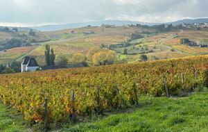Dommage le matin brouillard, en fin de matinée le soleil est là et nous a permis de découvrir toutes les jolies couleurs de l’automne des vignobles beaujolais
