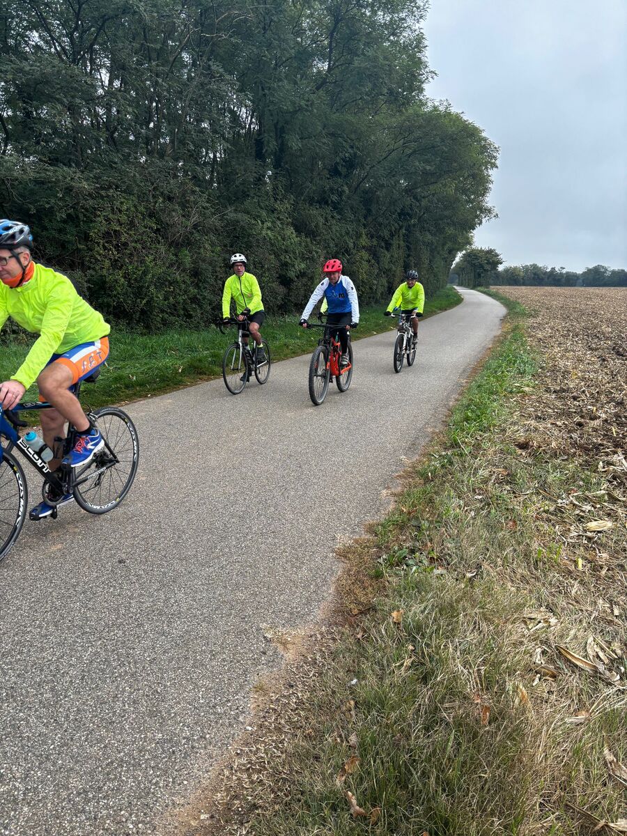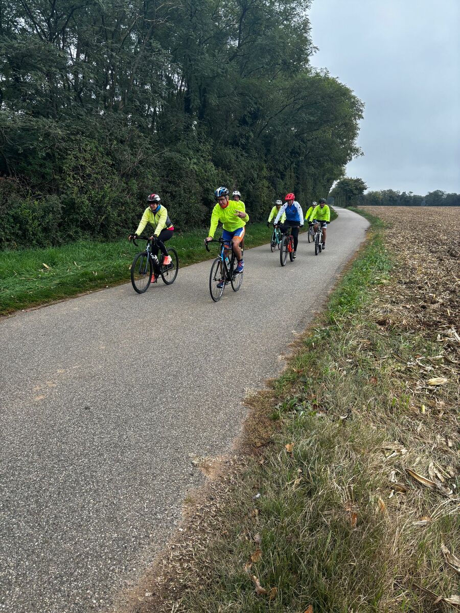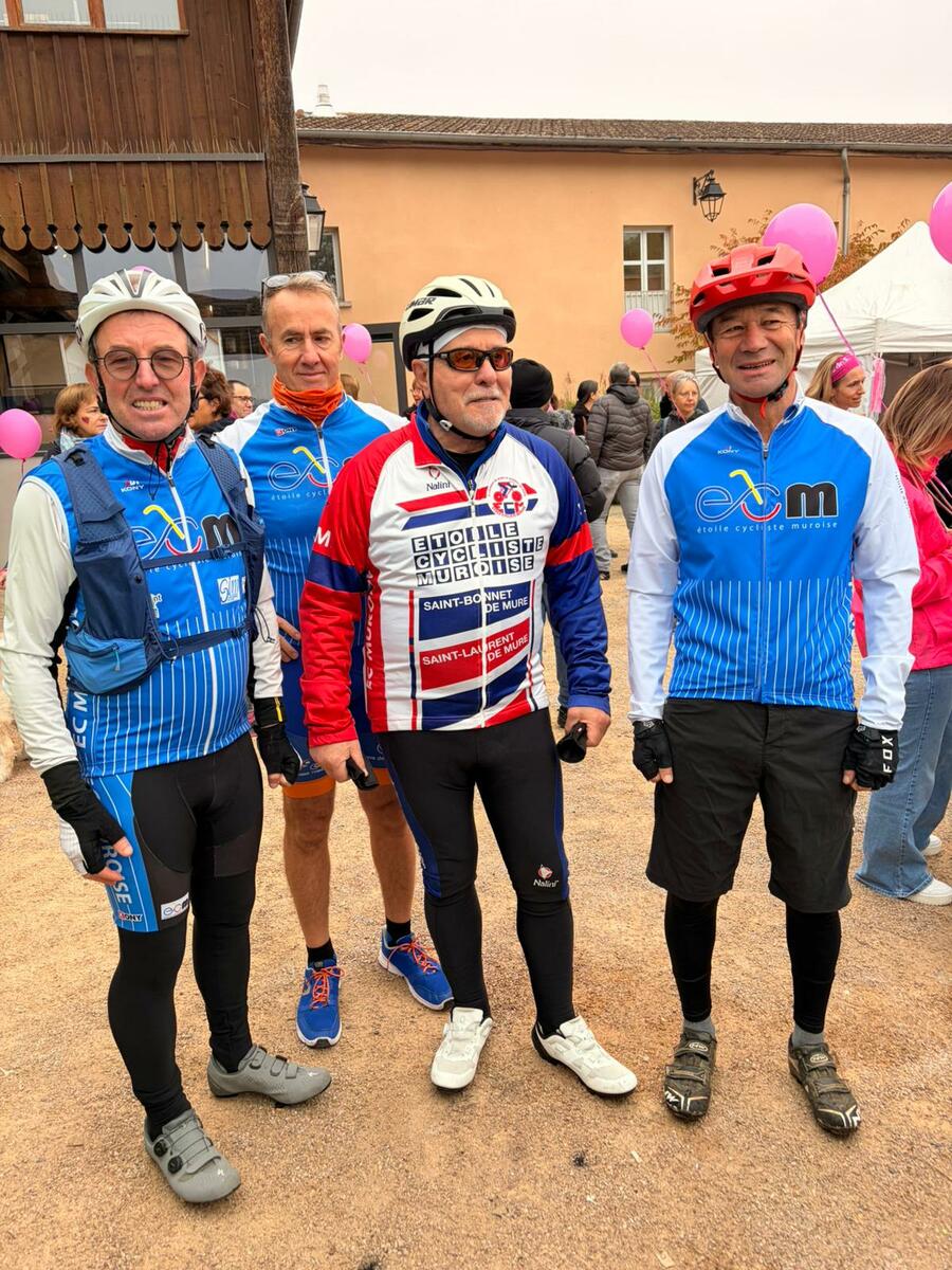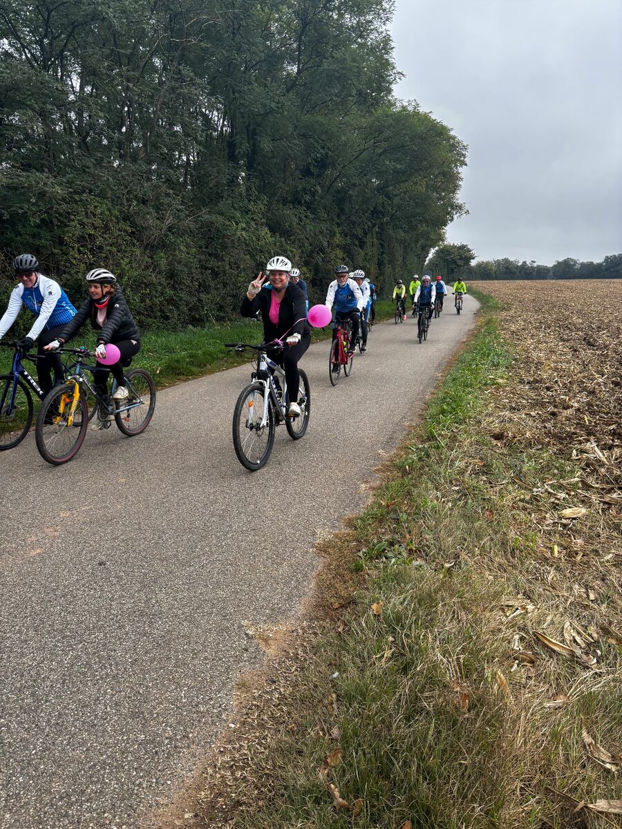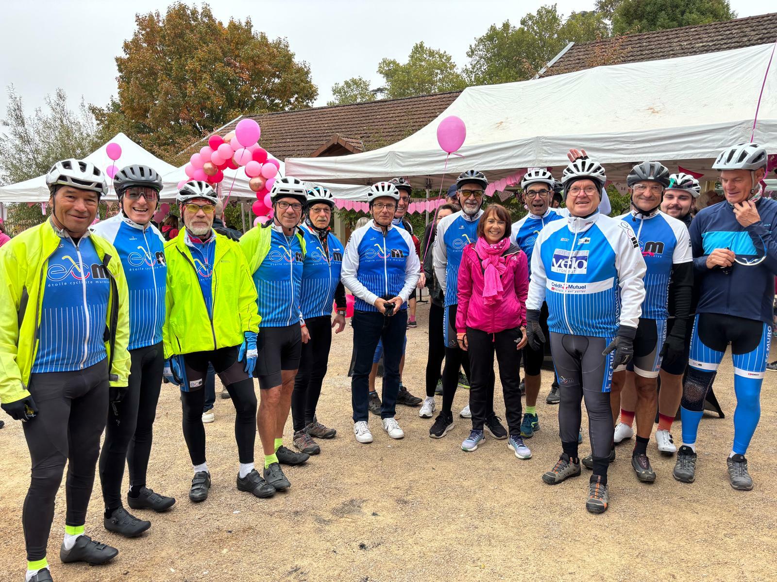 Un nombre important de licenciés de l'ECM a participé à la journée Octobre ROSE organisée par la mairie de Saint Bonnet de Mure, pour une sortie vélo accompagné de quelques cyclos